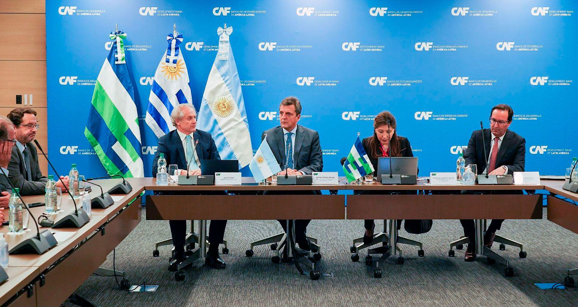 Sergio Massa, durante una reunión de directorio con la CAF, el banco regional que le dará un préstamo puente para pagar los vencimientos con el FMISergio Massa, durante una reunión de directorio con la CAF, el banco regional que le dará un préstamo puente para pagar los vencimientos con el FMI