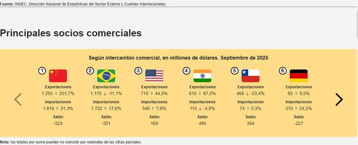 Los datos de la balanza comercial de septiembre arrojaron la sorpresa de que China desplazó a Brasil como principal socio comercial, algo que no ocurría desde noviembre de 2022. Si bien hubo factores puntuales del mes que explicaron este cambio, también existen elementos estructurales que muestran una tendencia a la penetración del gigante asiático tanto en el país como en la región.