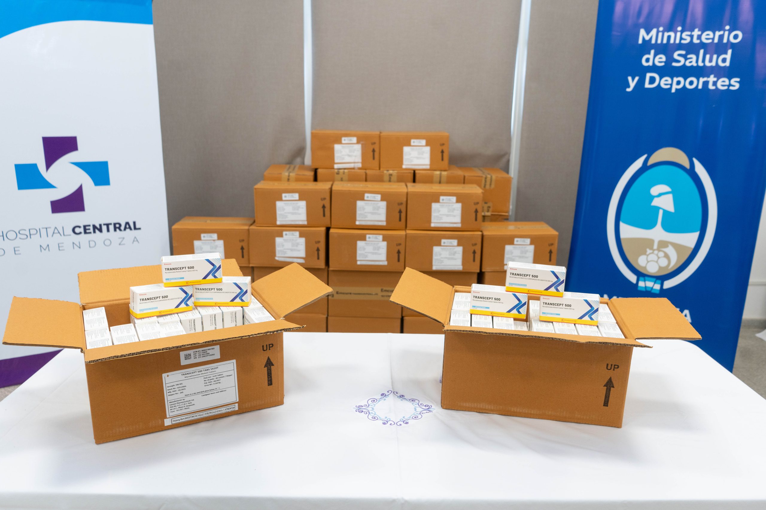 La actividad se desarrolló en el auditorio del Hospital Central, ubicado en el primer piso del nuevo edificio de guardia, donde se presentaron las 199.700 unidades de micofenolato de mofetilo 500 mg comprimidos, un medicamento inmunosupresor utilizado principalmente para prevenir el rechazo en pacientes con trasplante de órganos sólidos, como riñón, corazón o hígado.
