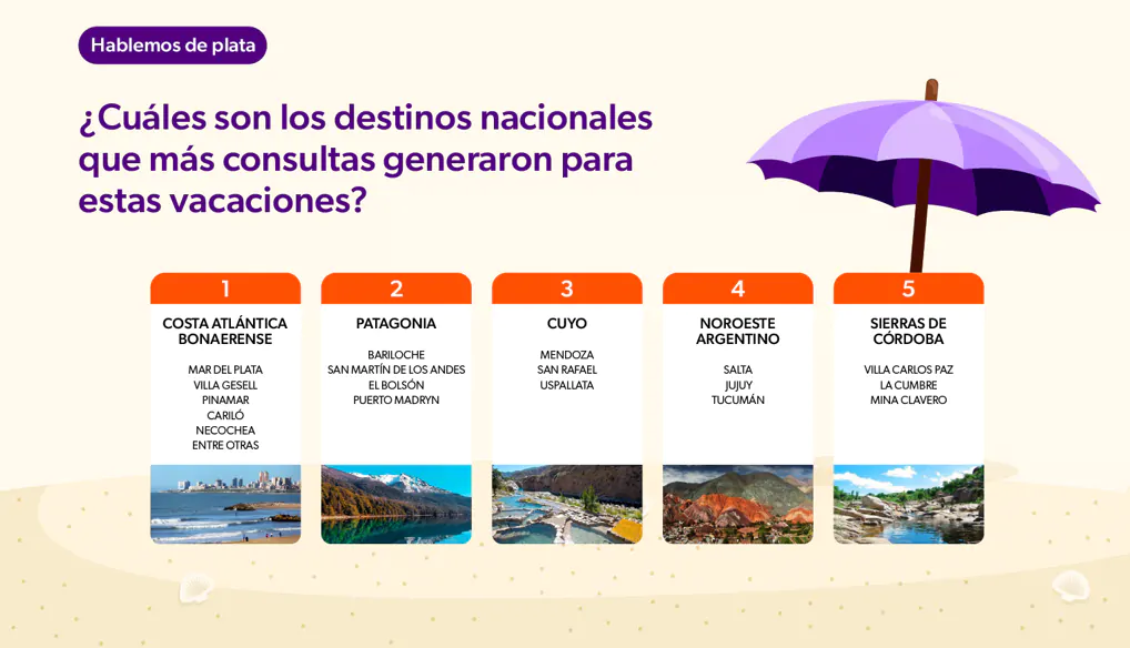 Otro de los datos relevantes del informe señala que, al planificar las vacaciones, los destinos más buscados por los argentinos fueron la costa atlántica, la Patagonia y la región de Cuyo, que de esta última se destacan búsquedas destacadas de tres destinos mendocinos: Mendoza, San Rafael y Uspallata. Luego siguen el Noroeste argentino y las sierras de Córdoba.