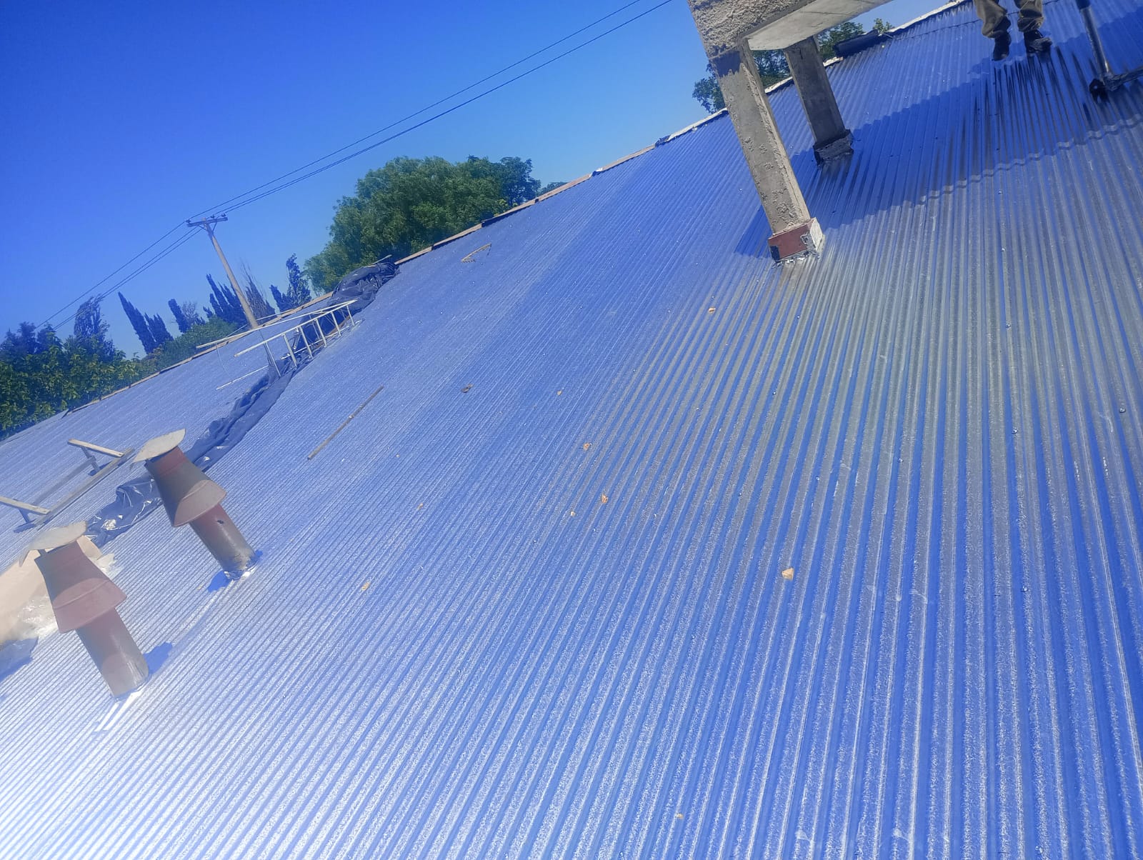 Cabe destacar que del techo se sacó parte de las chapas de fibrocemento, se limpió, se colocó refuerzo metálico para poder atornillar las chapas nuevas y luego se realizará la zinguería correspondiente. Respecto del piso, se demolieron paños de hormigón que estaban muy deteriorados y se hormigonaron nuevamente.