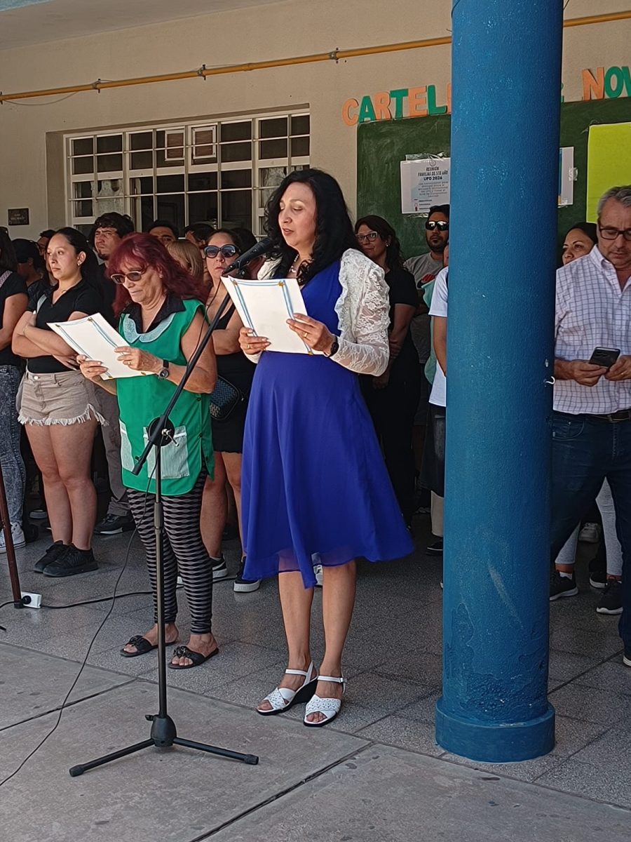 En la Escuela 4-115 Infanta Mendocina, del departamento de Guaymallén, se llevó a cabo el acto de inicio con la presencia de la directora del nivel secundario, Cecilia Páez.