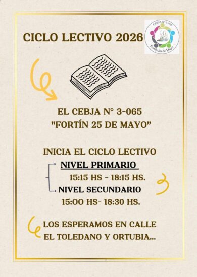 Inicia el Ciclo Lectivo «El CEBJA N° 3-065 Fortín 25 de Mayo» Publicado por: Juan Carlos Sambataro 25 febrero, 2026