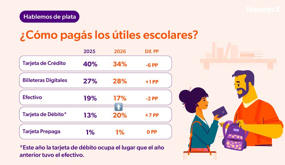 El estudio también analizó cómo se organizan las familias para afrontar estas compras. Febrero continúa siendo el mes más elegido, con el 36% de las adquisiciones, aunque pierde peso respecto de 2025, cuando representaba el 42%. En paralelo, crece el grupo que compra apenas una semana antes del inicio de clases, que pasa del 20% al 24%. También se registra un leve aumento de las compras anticipadas en diciembre (14% frente al 12% del año anterior).